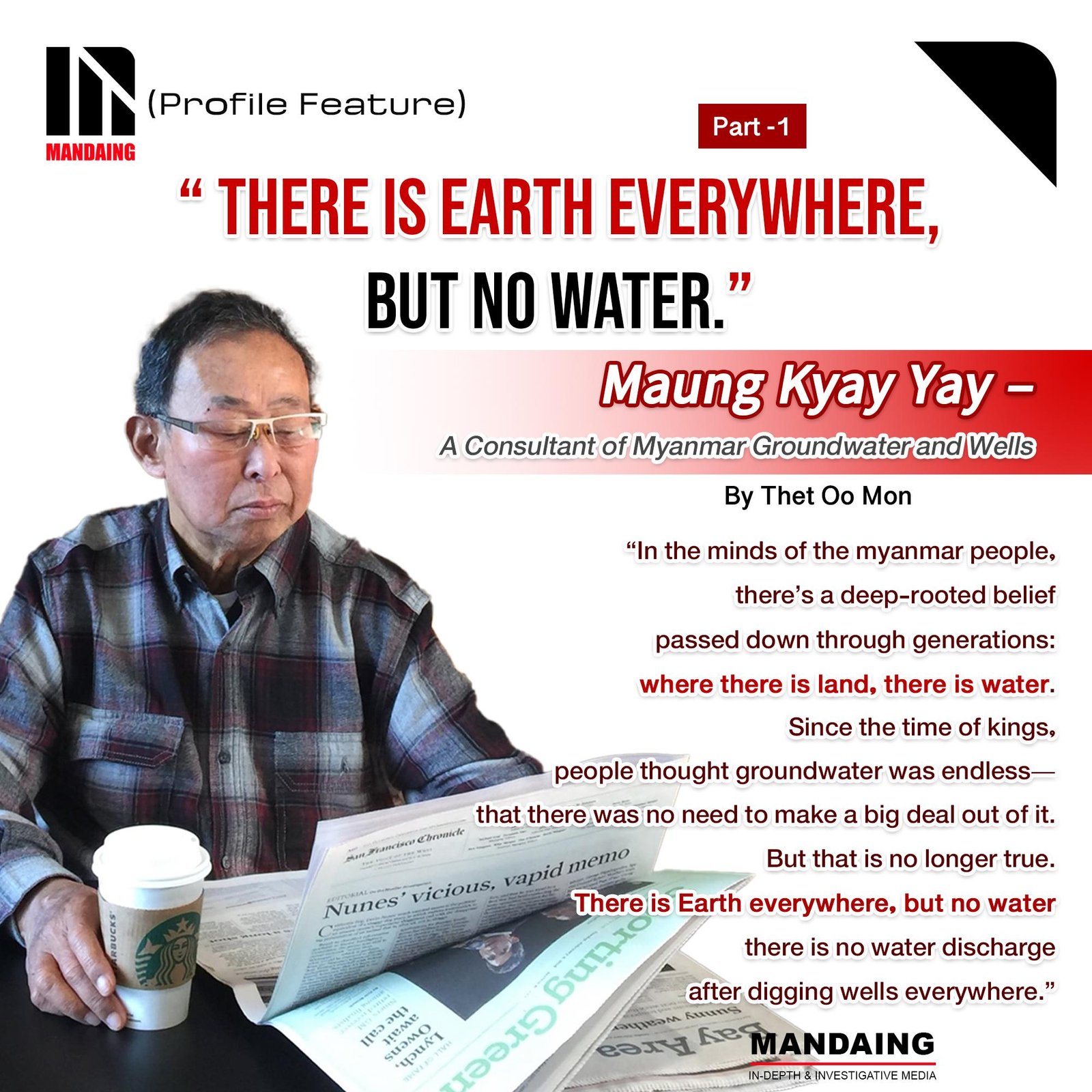 Though he does not currently live in Myanmar, he continues to warn the Myanmar people tirelessly about the looming groundwater crisis while residing in the United States for medical treatment (for heart disease) (because of Heart failure since 2017, and he is living with a Left Ventricular Assist Device, LVAD, under continuous Medicare).
